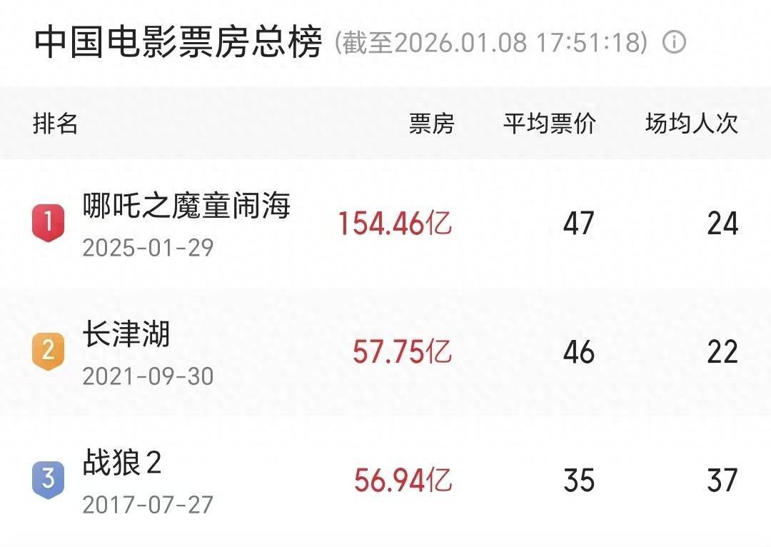 关连词,跟着2025年春节档《哪吒2》的上映,“独一吴京智力击败我方”这一说法被透顶冲突。《哪吒2》国内票房越过154亿东谈主民币,以近100亿东谈主民币的上风大幅卓著《长津湖》,成为中国影史新的票房冠军。从此,能击败吴京的,不仅有吴京我方,还有别传东谈主物哪吒。
