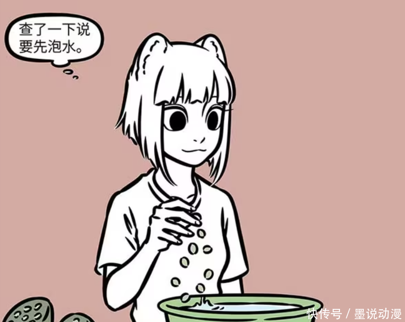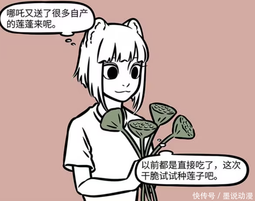 《非东说念主哉》漫画版中,哪吒的头顶不仅不错长出荷叶和荷花,也能结出莲蓬,也就能产出广漠莲子。九月把这些莲子拿去种,最终长出广漠小哪吒。哪吒告诉九月,这些算是他的分身,不是活物。仅仅没念念到九月懒得养,将它们一齐齐煮了。 哪吒频繁会产出广漠莲蓬,这一次更是送了九月不少。夙昔九月齐是凯旋吃掉,这一次诡计试试种一下莲子。九月巧合候便是这样,心血来潮就会去尝试许多东西,不外频繁会铲除,那么这一次呢? 九月在种莲子之前,依然在网上查找了一些主义。先将莲子从莲蓬内部剥出来,再泡在水里。这个经由没什么时间