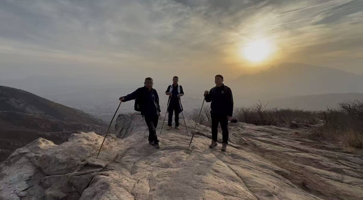 r攀爬3个多小时后,山顶上的嵩山现象站终于出目前目下,两拨东谈主在站里告成会师。