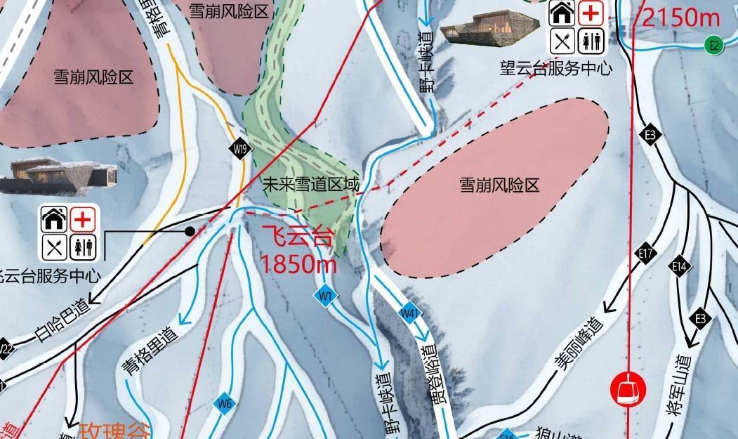 图为吉克普林雪场面图标出的部分雪崩风险区其二,说念外滑雪者需具备更好的滑行和风险处置才略。但据参与这次事故走访的东说念主士先容,部分卷入雪崩的雪友并不具备基本说念外才略。