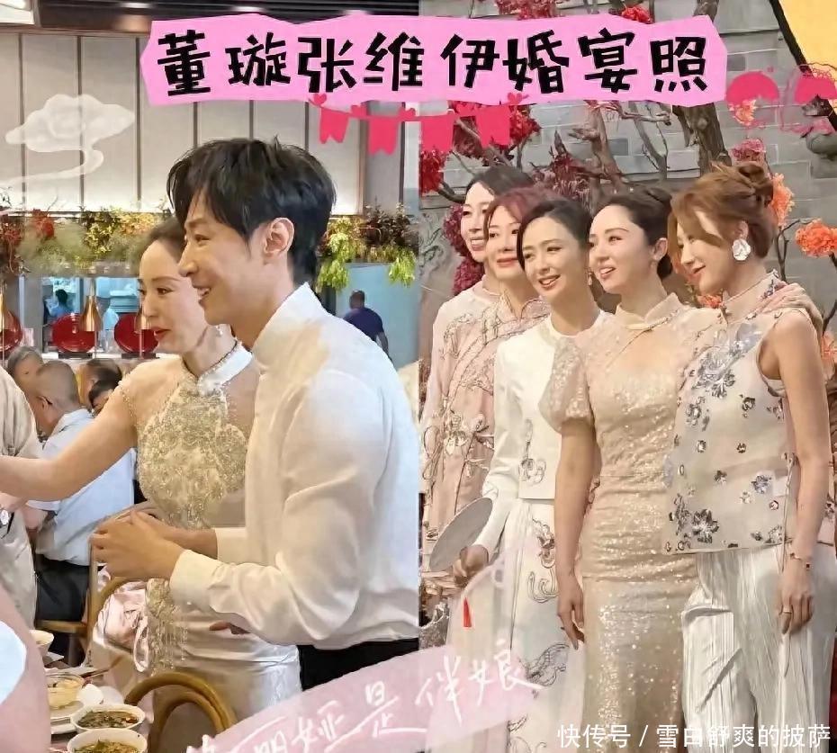 董璇与张维伊6月21日在山西大同某闻明货仓设席的画面,这几天在荟萃娴雅传。董璇身穿纯白立领旗袍,珍珠耳坠。37岁的张维伊孤苦笔挺西装,敬酒时一脸幸福。