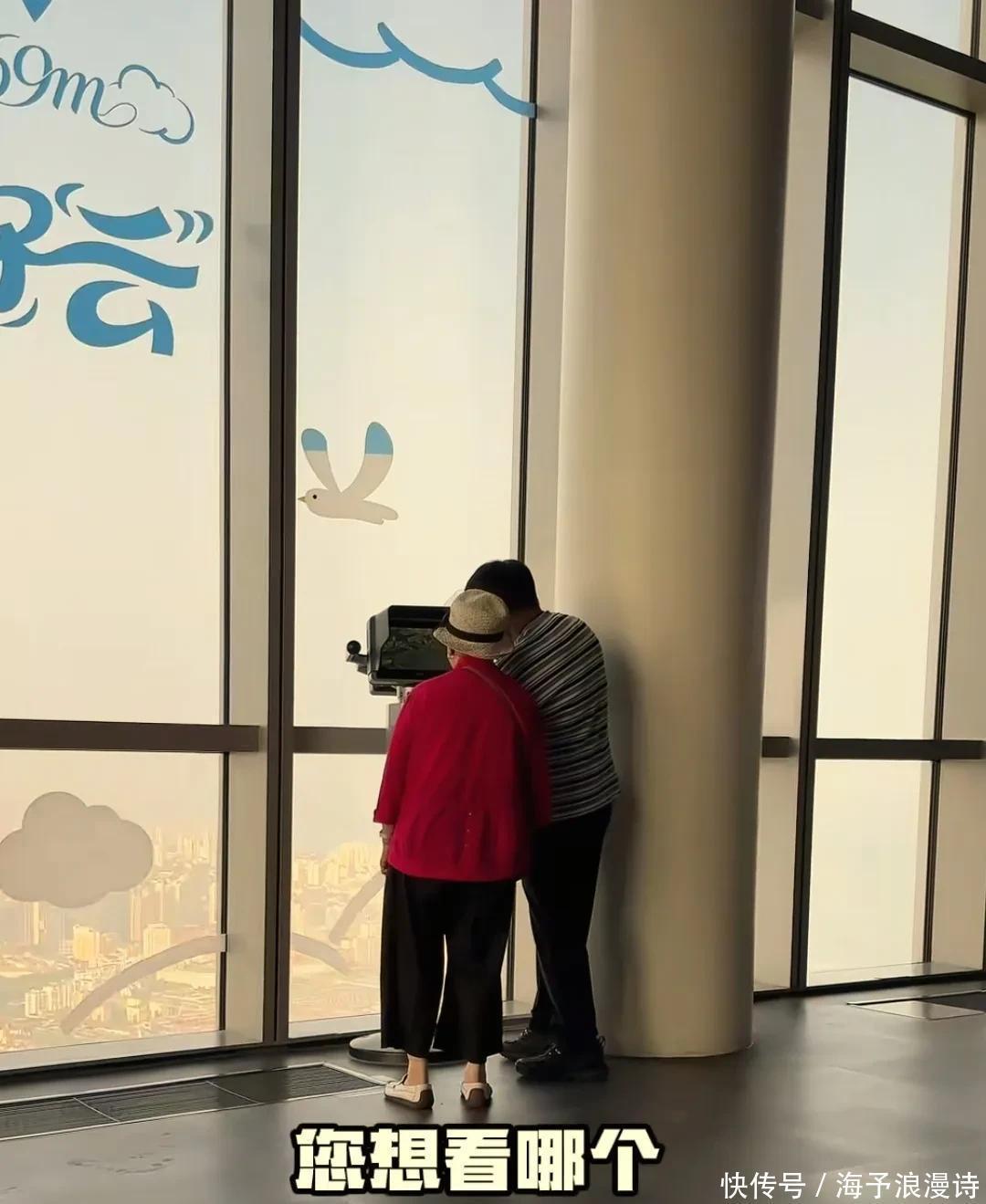 阳台上还有付费式的千里镜,洪剑涛问母亲念念不念念看,老佳耦点点头,于是洪剑涛支付了5元钱,子母俩一东说念主看了一分钟,老佳耦看的余味无穷。