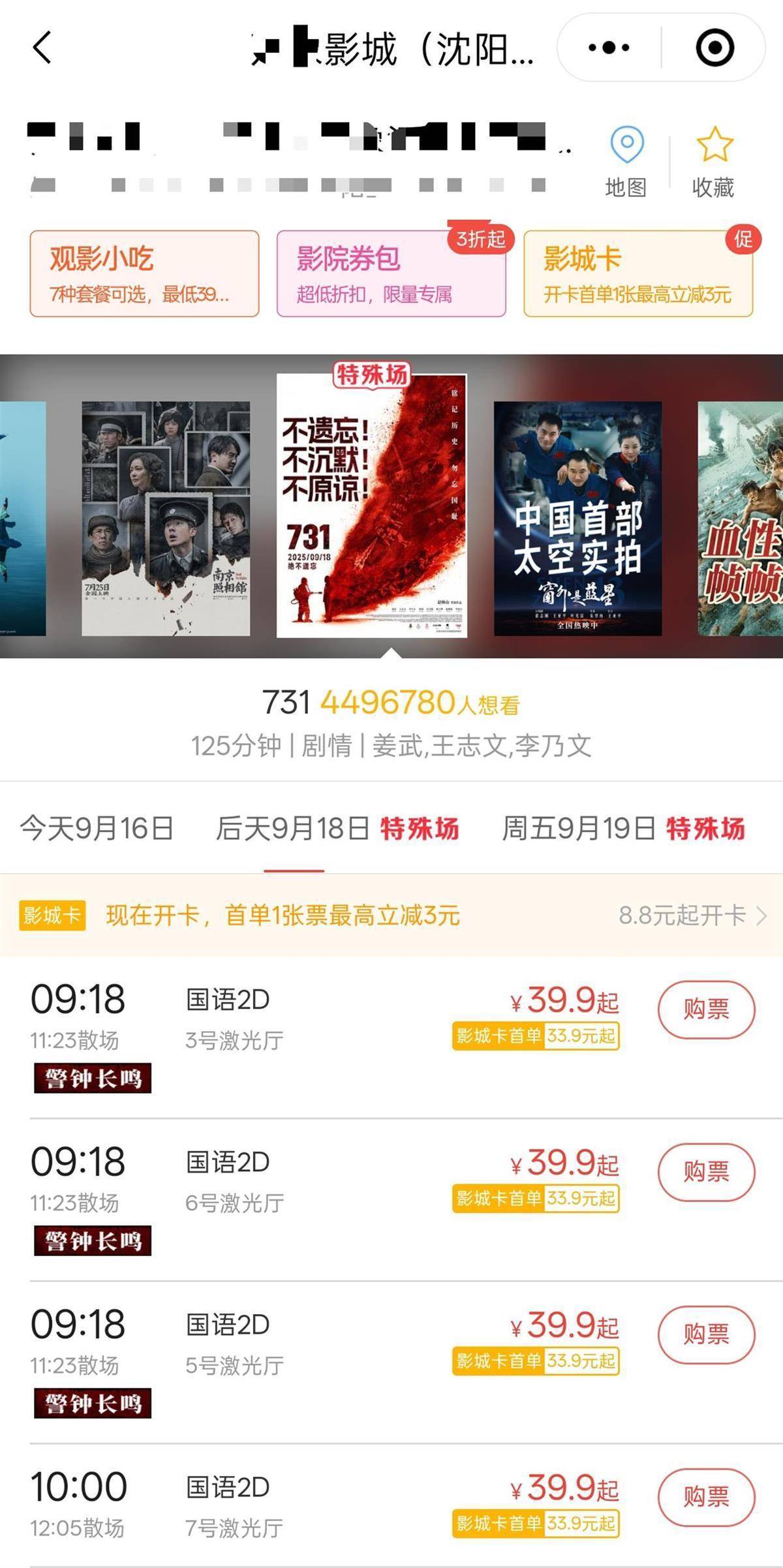 9月16日下昼,极目新闻记者端庄到,国内多地影院的排片表夸耀,《731》首场放映时分定在了上昼9点18分,并注有“警钟长鸣”的绚烂。
