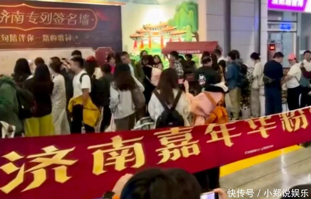 更贴心的是济南的安排!挑升开了粉丝高铁专线,车里车外皆放着杰伦的歌,还在出站口为大家招引了签名墙。
