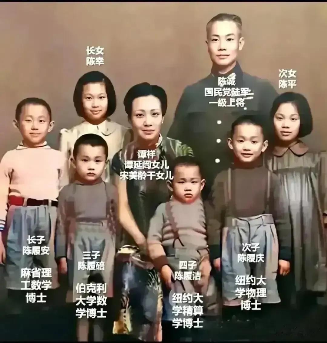 这是陈诚全家福亚bo体育网,陈诚为国民党陆军一级上将,浑家谭祥是谭延闿之女、宋好意思龄干女儿。他们育有5个子女亚bo体育网,其中4个男儿均得回博士学位,在数学、物理、蓄意等限制学有所成。