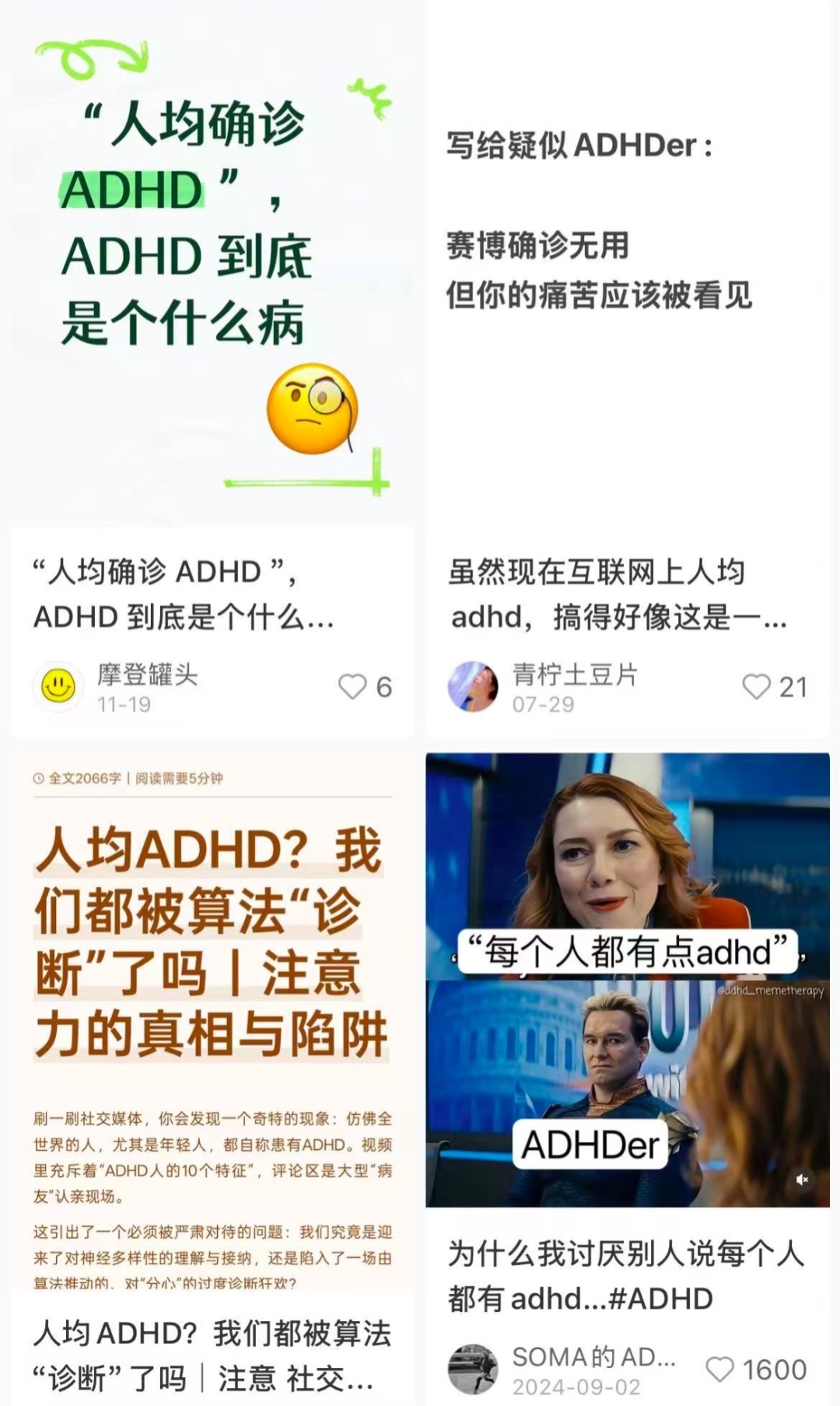 “东谈主均ADHD”一度是个汇集热词。应酬平台流传着“ADHD自测表”,网友们作念完纷繁发现我方不是爱拖延、爱开小差、三分钟热度,而是“患上了ADHD”。